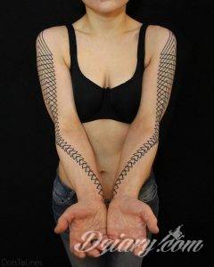 Tatuaże geometryczne niepokojąco kuszące wzrok. Łączą prostą formę opartą na kilku kształtach jak i duże formaty o spójnej kompozycji graficznej stworzonej z niewielkich symboli.