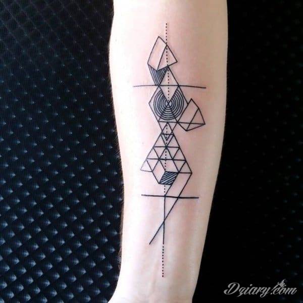 Tatuaże geometryczne niepokojąco kuszące wzrok. Łączą prostą formę opartą na kilku kształtach jak i duże formaty o spójnej kompozycji graficznej stworzonej z niewielkich symboli.