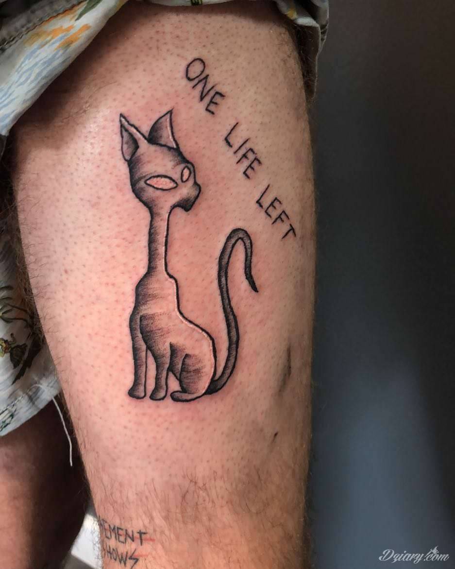 Kocie tatuaże to nie tylko duże projekty sympatycznych milusińskich. Tatuaże z kotami to również małe projekty, które dyskretnie ozdabiają miejsca częściowo zakryte - fragmenty uszy czy obręcz barkową.