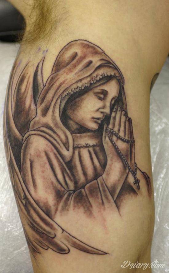 Tatuaże podkreślające nie tylko przywiązanie do religii. Krzyże o różnej formie - od cienkich po potężne; stylizowane na drewno jak i krzyże o metalicznej postaci czasami podkreślone dodatkowym łańcuchem.