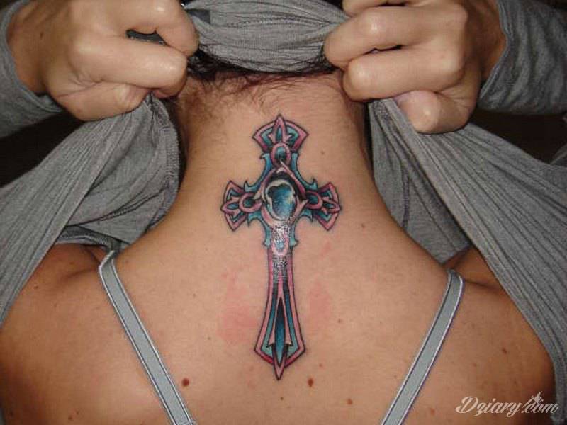 Tatuaże podkreślające nie tylko przywiązanie do religii. Krzyże o różnej formie - od cienkich po potężne; stylizowane na drewno jak i krzyże o metalicznej postaci czasami podkreślone dodatkowym łańcuchem.