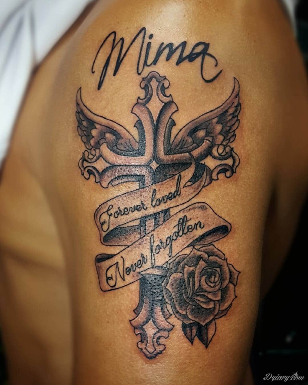Tatuaże podkreślające nie tylko przywiązanie do religii. Krzyże o różnej formie - od cienkich po potężne; stylizowane na drewno jak i krzyże o metalicznej postaci czasami podkreślone dodatkowym łańcuchem.