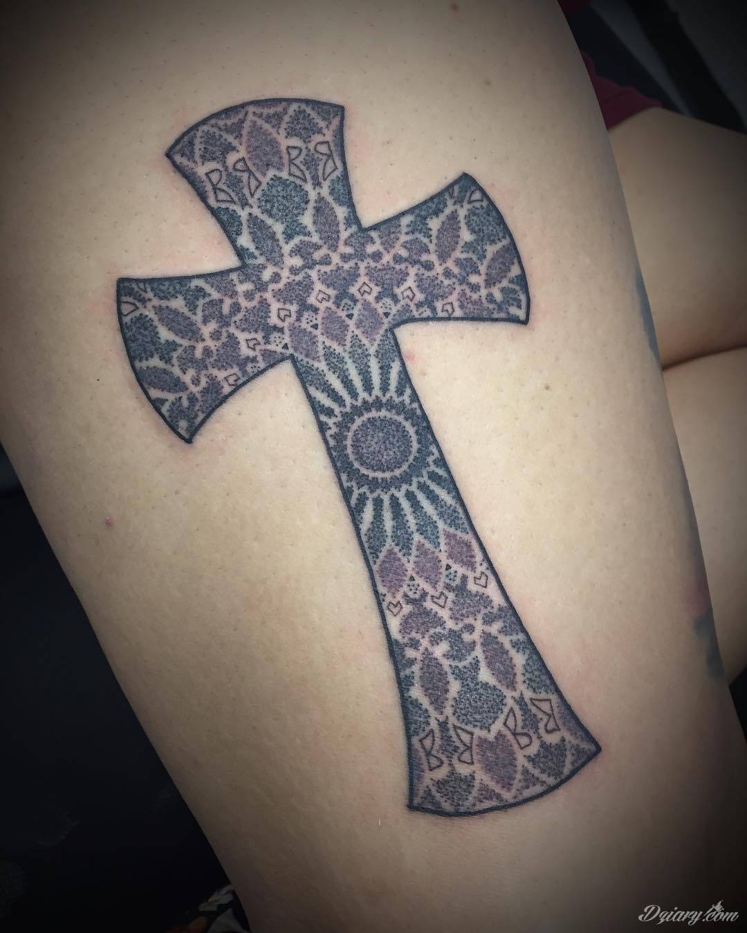 Tatuaże podkreślające nie tylko przywiązanie do religii. Krzyże o różnej formie - od cienkich po potężne; stylizowane na drewno jak i krzyże o metalicznej postaci czasami podkreślone dodatkowym łańcuchem.