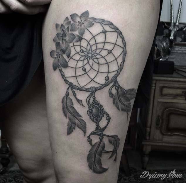 Łapacz snów - z ang. dreamcatcher - to jeden z popularniejszych motywów wśród osób ceniących sobie niebanalność o oryginalność formy. Łączy kursywę oraz rozbudowane grafiki.