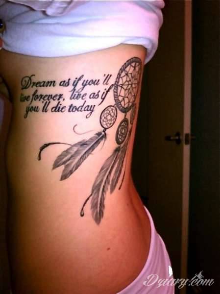 Łapacz snów - z ang. dreamcatcher - to jeden z popularniejszych motywów wśród osób ceniących sobie niebanalność o oryginalność formy. Łączy kursywę oraz rozbudowane grafiki.
