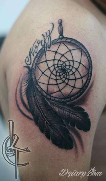 Łapacz snów - z ang. dreamcatcher - to jeden z popularniejszych motywów wśród osób ceniących sobie niebanalność o oryginalność formy. Łączy kursywę oraz rozbudowane grafiki.