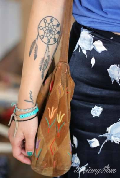 Łapacz snów - z ang. dreamcatcher - to jeden z popularniejszych motywów wśród osób ceniących sobie niebanalność o oryginalność formy. Łączy kursywę oraz rozbudowane grafiki.