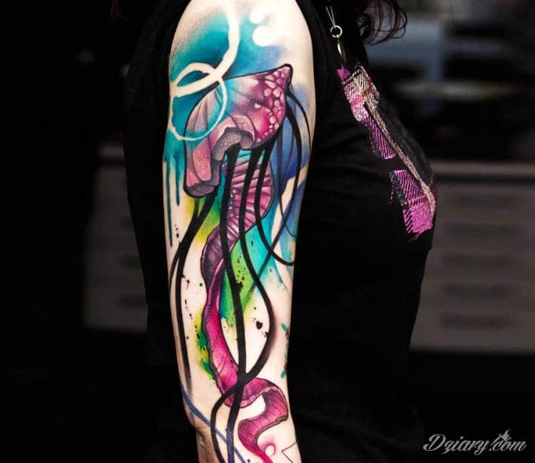 Akwarelowe tatuaże watercolor stanowią intrygujące połączenie unikatowych wzorów i rozbudowanej kolorystyki. Kreska jest w nich rozmyta; tworzą intrygujący efekt graficzny farby swobodnie przelewanej na skórze.