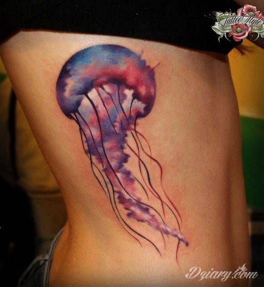 Akwarelowe tatuaże watercolor stanowią intrygujące połączenie unikatowych wzorów i rozbudowanej kolorystyki. Kreska jest w nich rozmyta; tworzą intrygujący efekt graficzny farby swobodnie przelewanej na skórze.