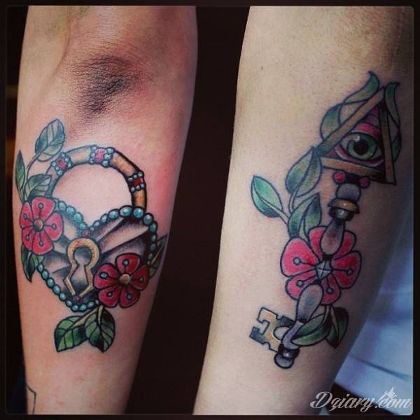 Kłódka, zamek z kluczem, symboliczna brama tworząca wejście do wnętrza - tego typu tatuaże symbolizują otwarcie, ale blokadę, wstęp do środka wyłącznie dla uprawnionych. Tatuaże eksponujące zamek z kluczem to przede wszystkim ciekawe wzornictwo niebanalnie łączące się z ciekawą kolorystyką.